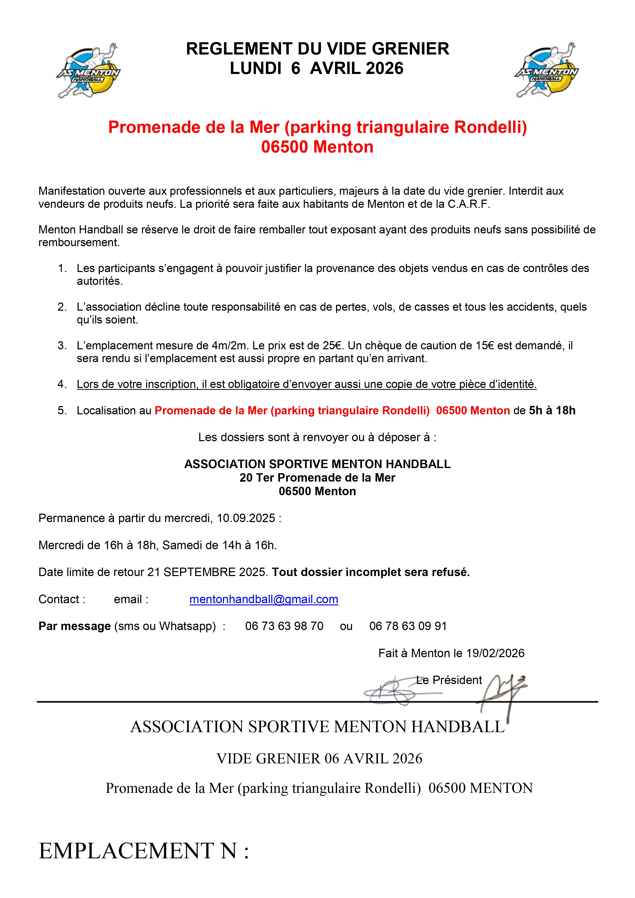 VIDE GRENIER DE PRINTEMPS de l' A.S. MENTON HANDBALL
